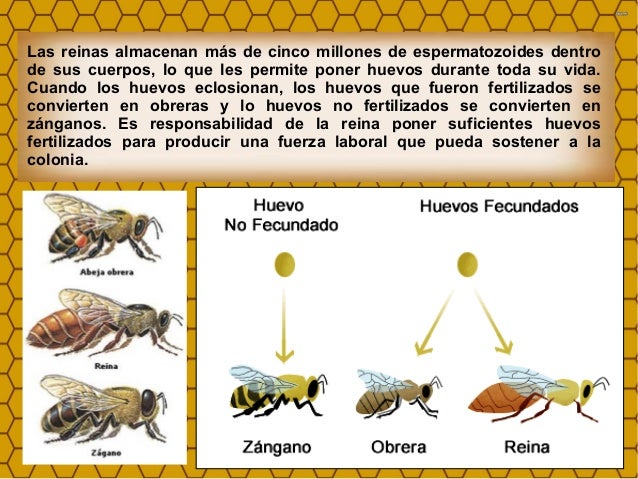 En las abejas, la reina solo copula una vez con el macho y guarda sus espermatozoides para utilizarlos cuando necesita fecundar sus óvulos, pero también puede depositar huevos no fecundados capaces de generar un nuevo organismo, controlando la partenogénesis y la fecundación de óvulos.