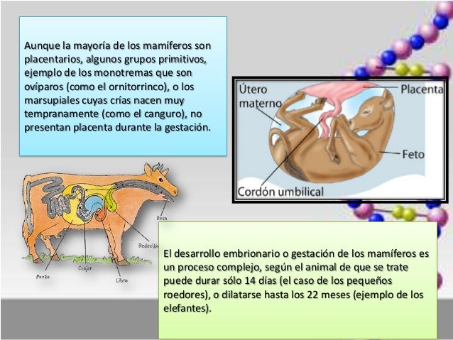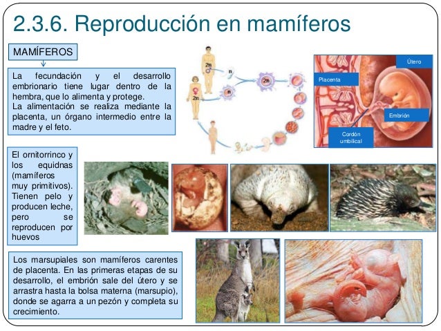 Vivíparos: el desarrollo embrionario de las crías es en el interior del útero de la madre y se alimentan de la placenta de esta hasta su completo desarrollo y nacimiento.